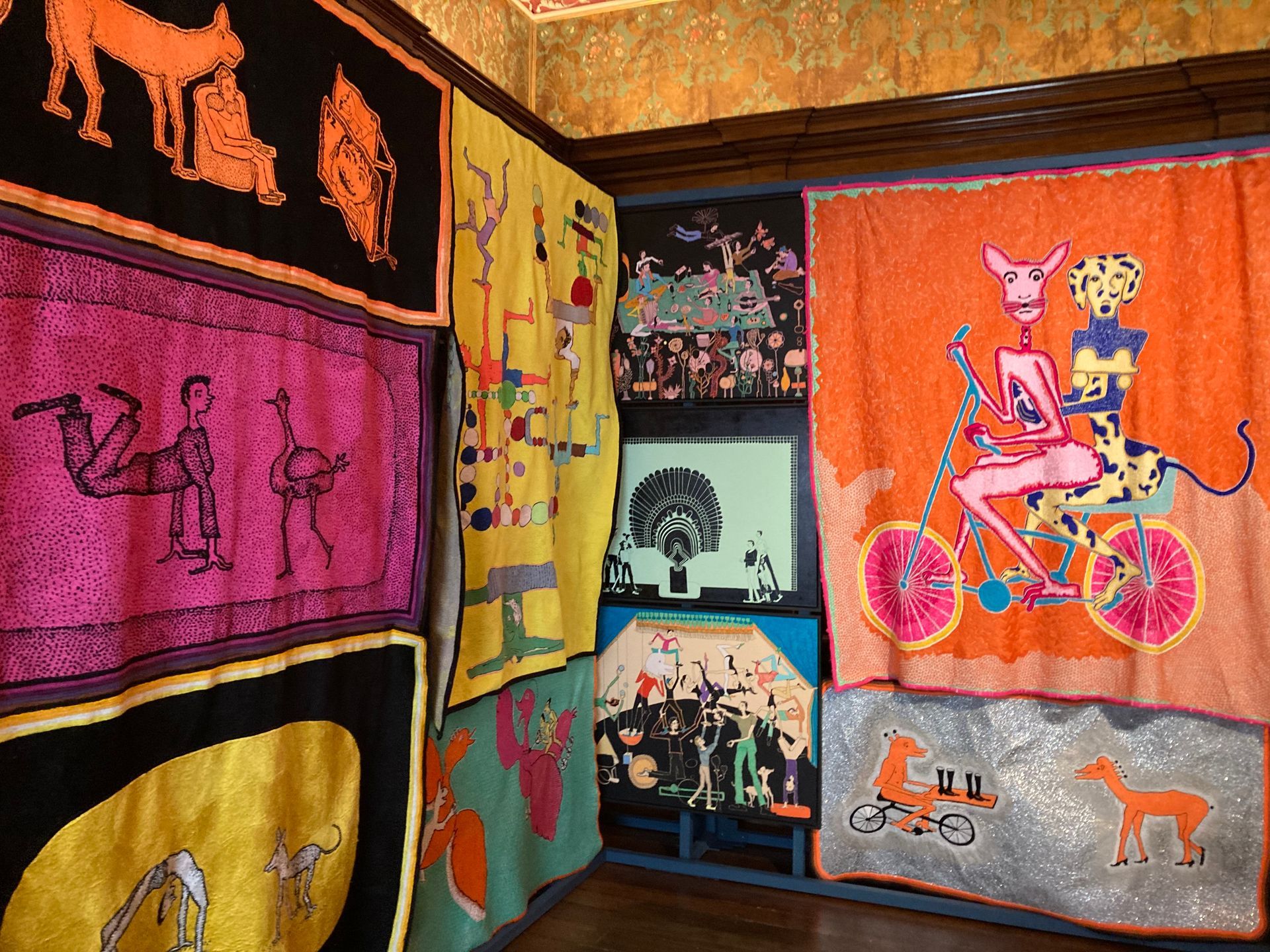 Yesterday a fabulous trip to Harewood Housein Leeds, the house is spectacular, and currently has a modern art exhibition through the State Rooms. This includes some detailed embroidered textiles and large clay pottery.