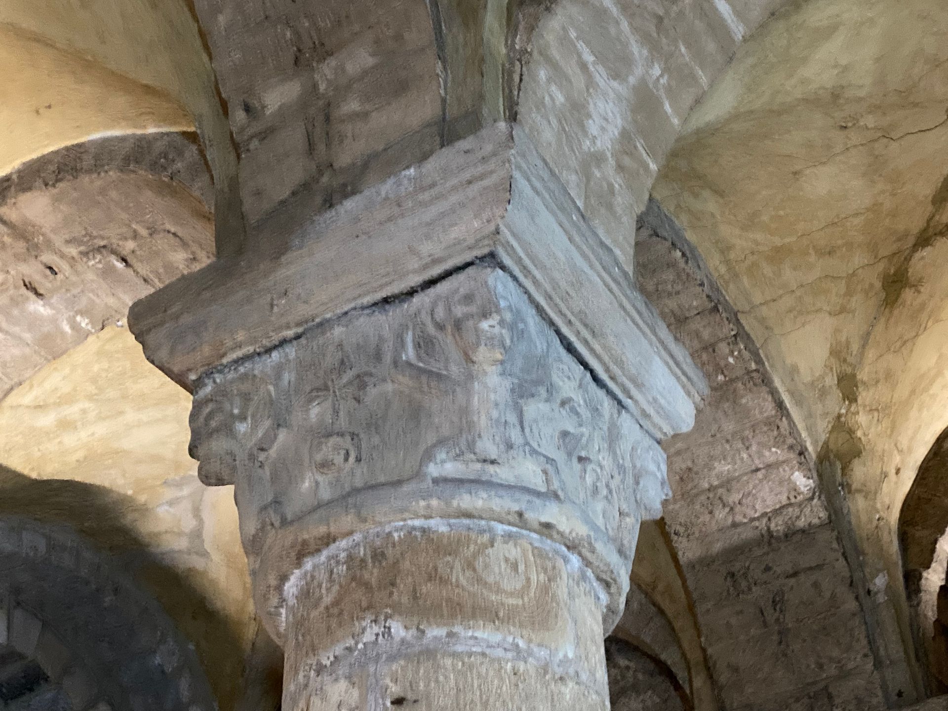 The chapel features an array of carvings thought to depict religious scenes and values. One of its capitals has an engraving of a man with two dogs hunting a stag. It is thought that this is a representation of St Eustace, who is said to have converted to Christianity when he saw an apparition of Jesus appear between the horns of a stag he was hunting.