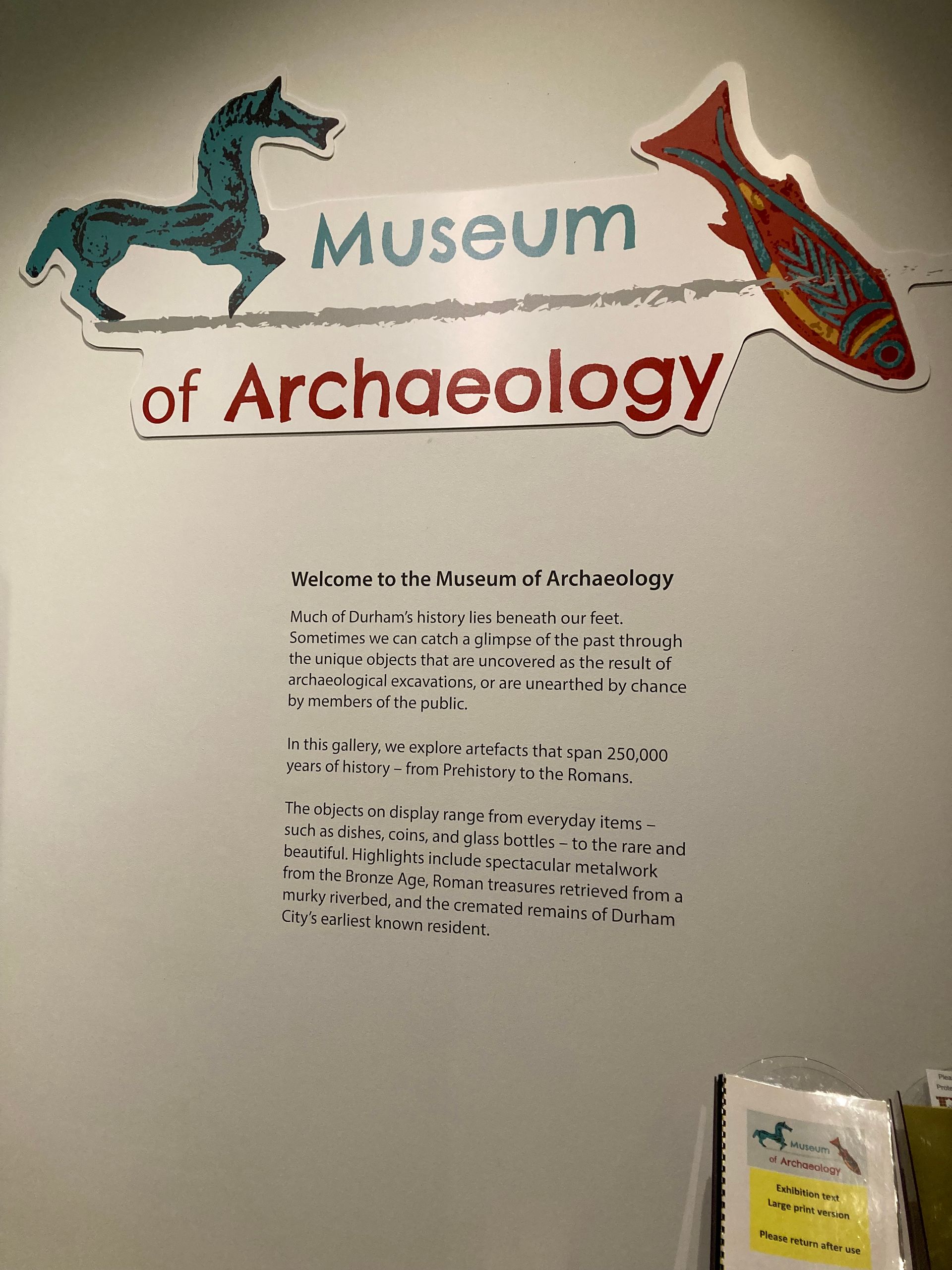 The Archaeology Museum displays a chronological history of the archaeology of Durham and its close area, from Mesolithic, through Roman times, to modern times. You can get around it all in an hour, and there are some interesting objects, some of which are quite quirky, from a modern engagement ring to . . .