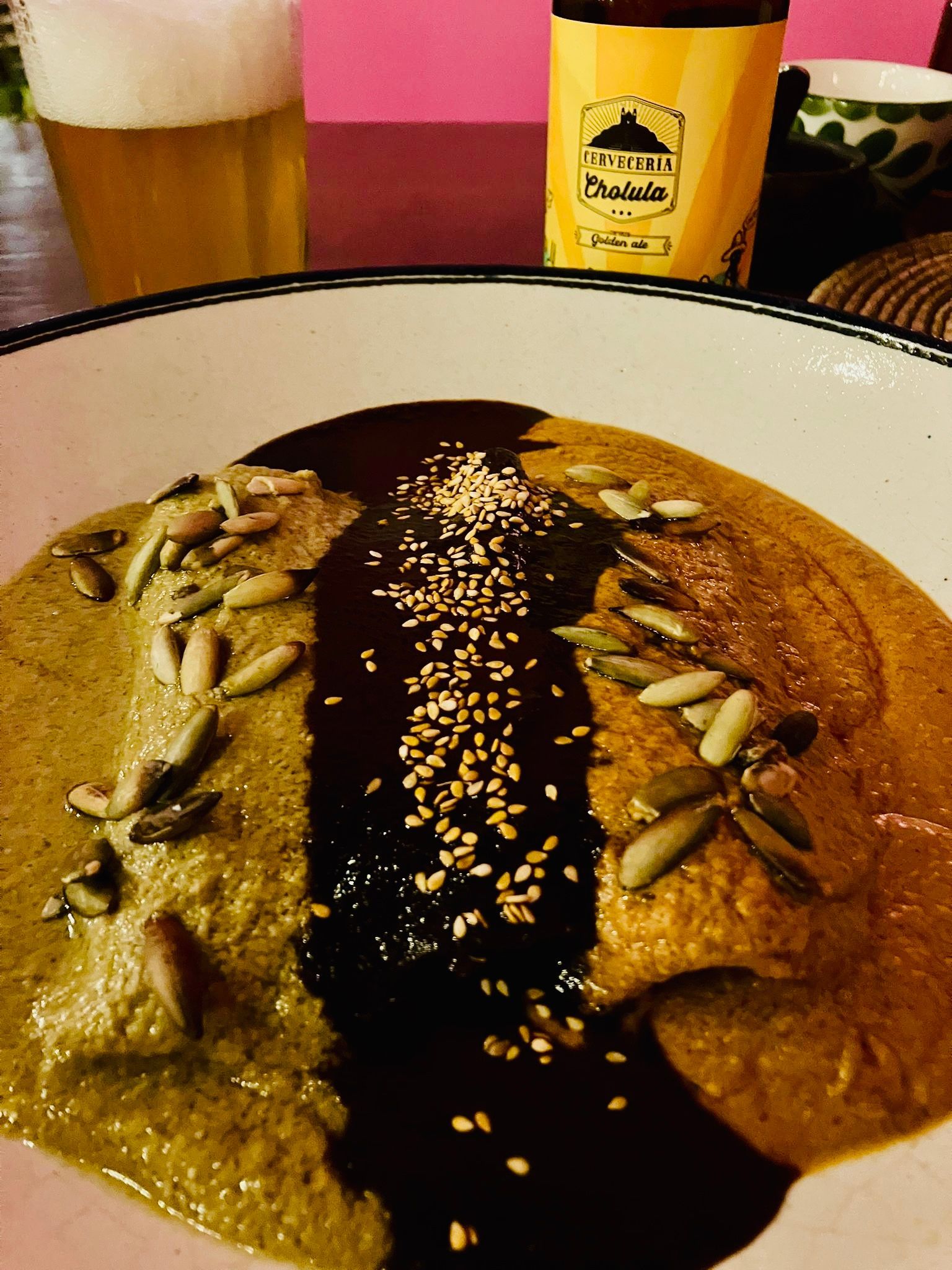 We ended the day where we had begun it, almost — dinner and beer at Casa de Azulejos, its tiles catching the last of the afternoon light, the enchiladas arriving exactly as hoped.