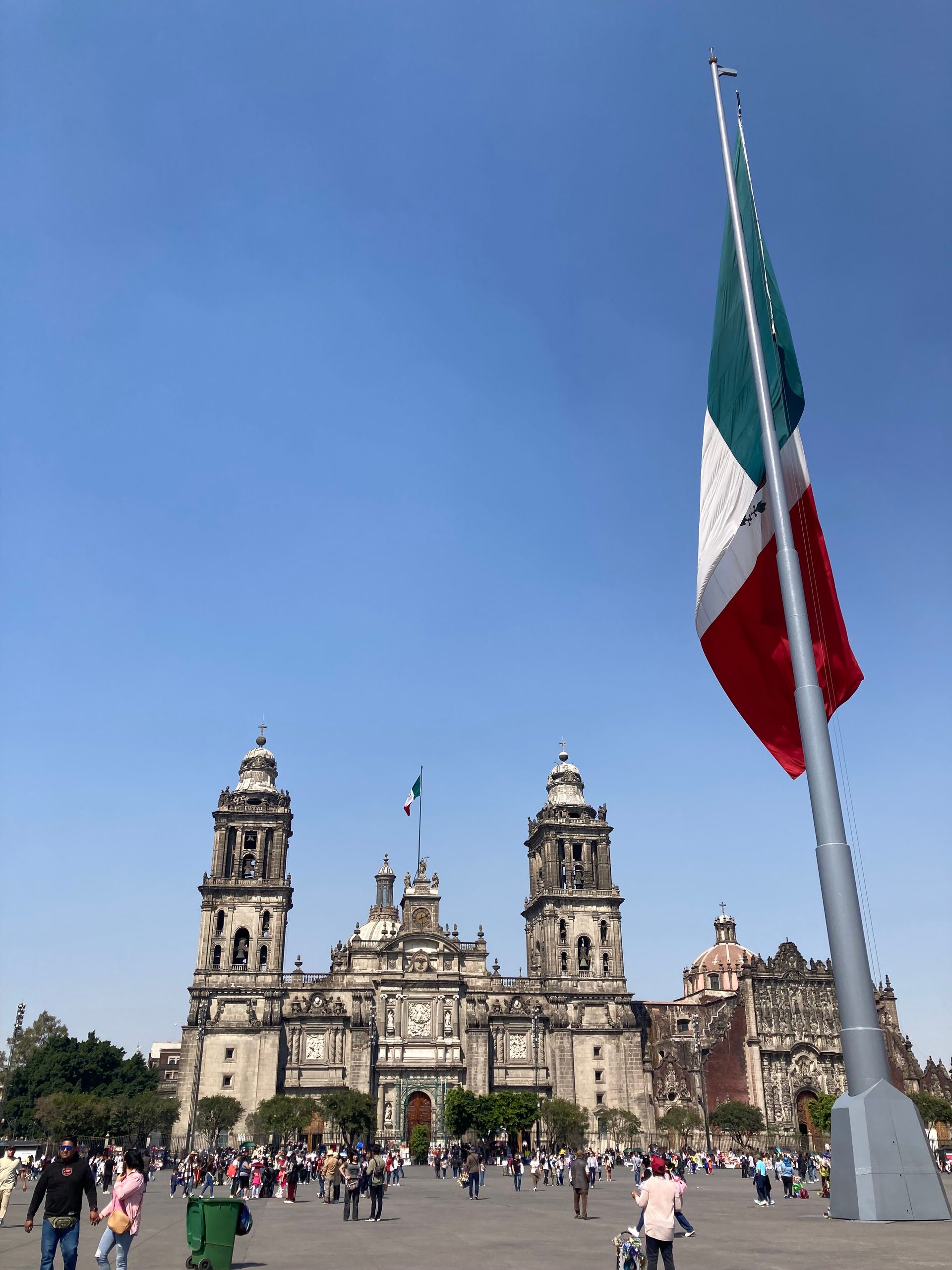 The Zócalo is the largest city square in the Americas, and standing at its centre — flag the size of a house snapping in the wind above you, the Metropolitan Cathedral immovable on one side, the Palacio Nacional on another — you feel the full weight of Mexican history pressing upward through the ground beneath your feet.