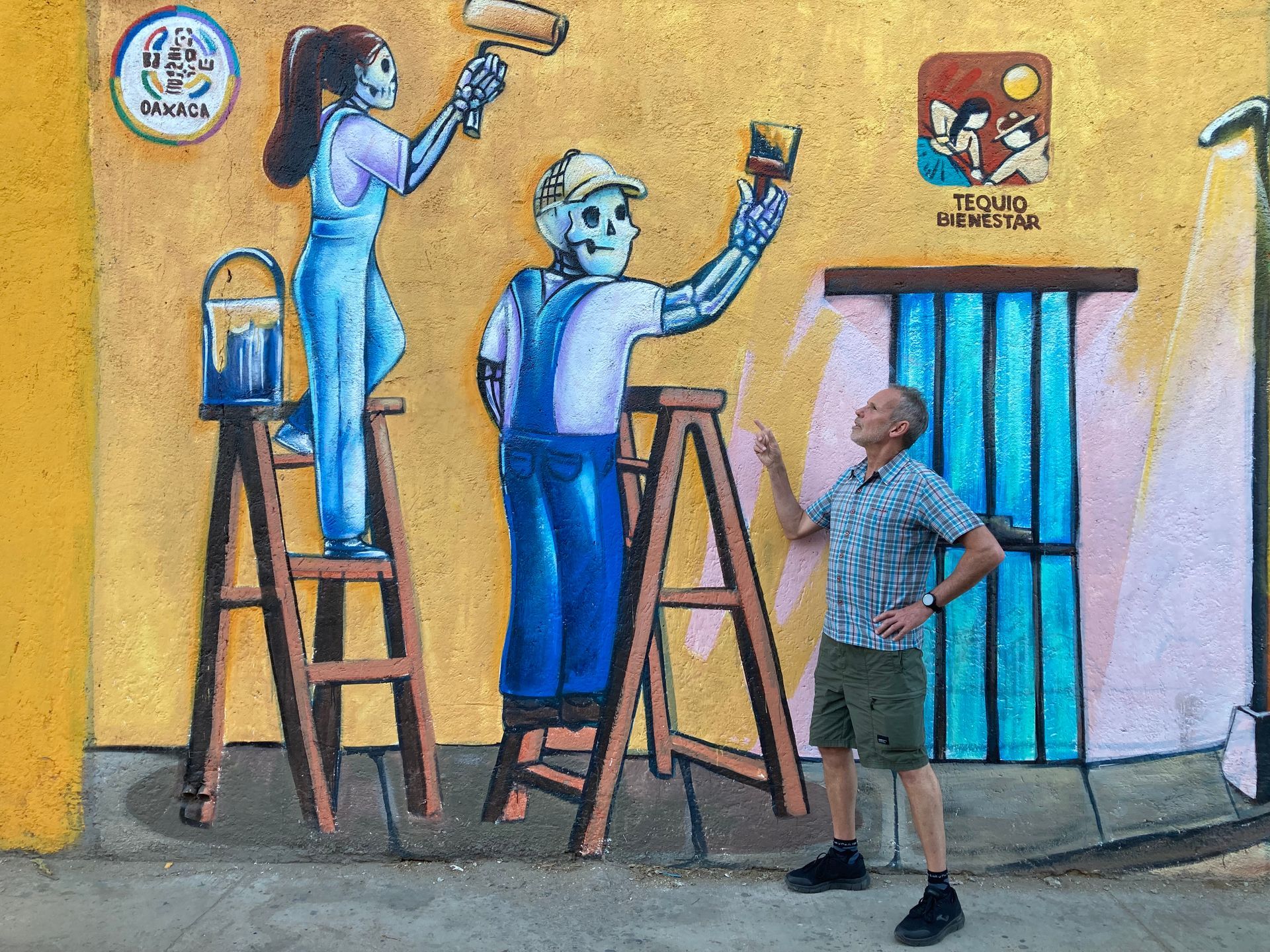 A morning walk to the Espacio Zapata area — more murals, different in character from Jalatlaco, less densely concentrated, interspersed with small galleries and shops selling ceramics and textiles. We browsed more than we bought, which in Oaxaca takes some discipline.