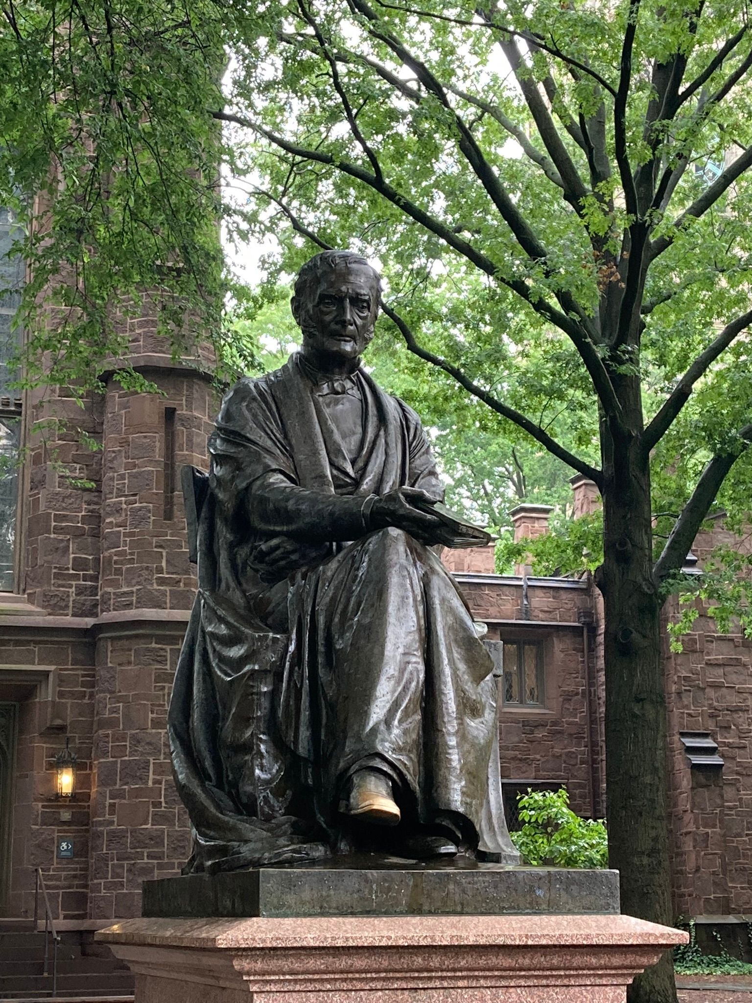 We walked across the historical New Haven Green to the Mead Visitor Centre to join a tour of Yale University delivered by one of their students. The visitor centre is in one of the oldest buildings in New Haven and had a display explaining the history of Yale, and we met their mascot the Yale Bulldog.