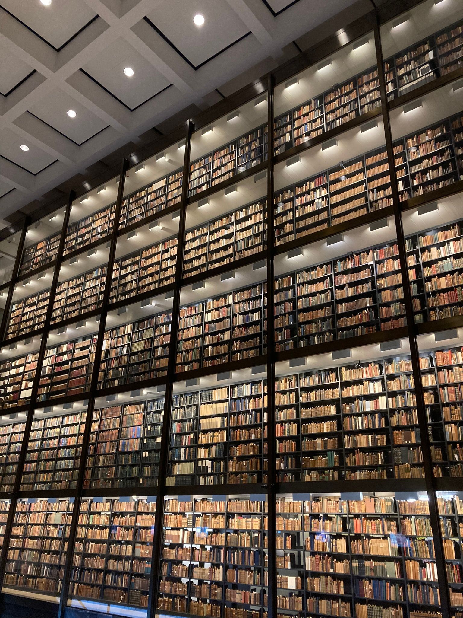 After the tour we went back to see inside both of the libraries, the Beinecke has the books behind large glass screens over six floors. They currently have an exhibition about the Holocaust which was excellent, this included a large number of televisions with headphones to see the interviews with a wide range of people, all with their own experience of the Holocaust.