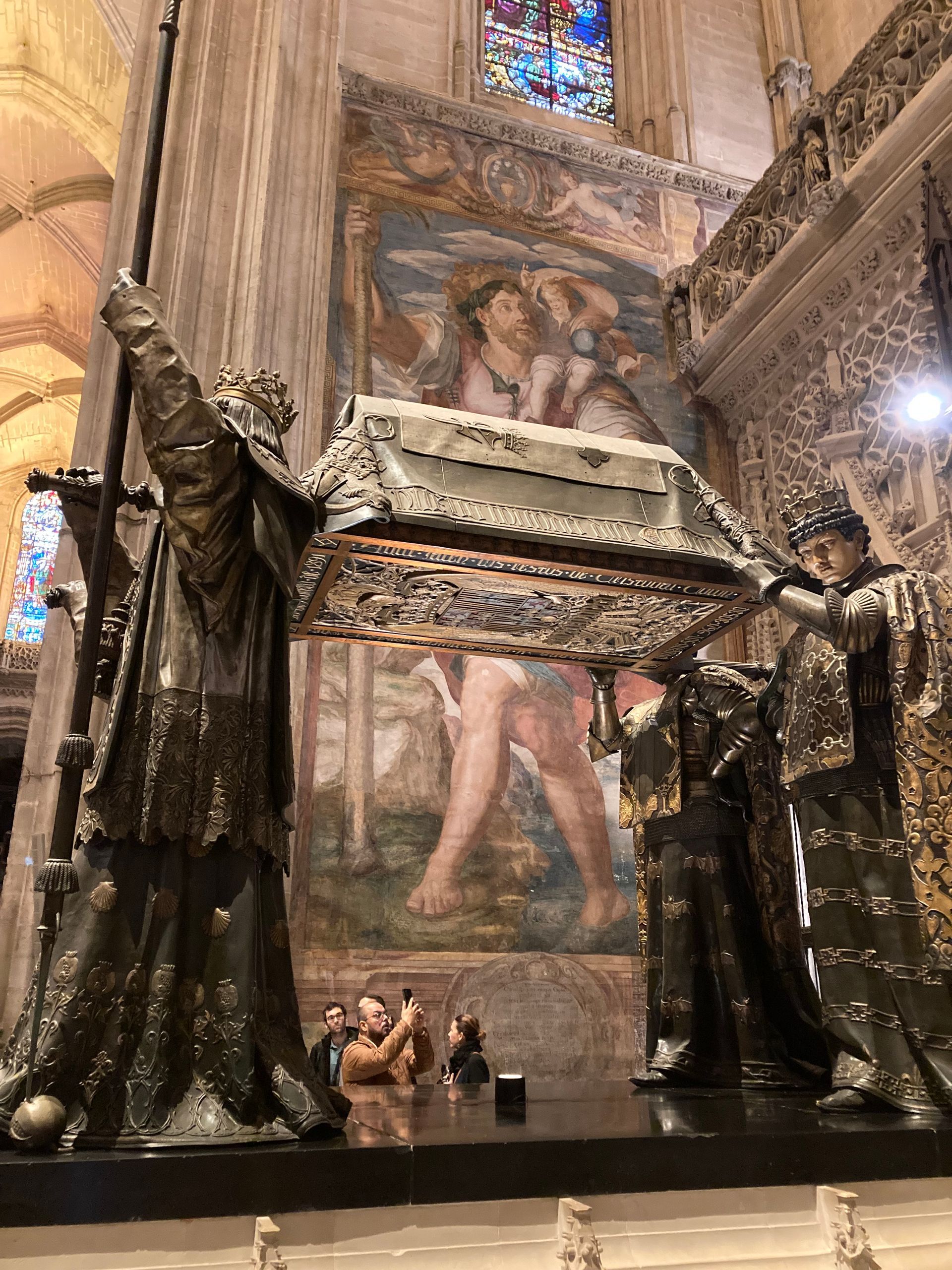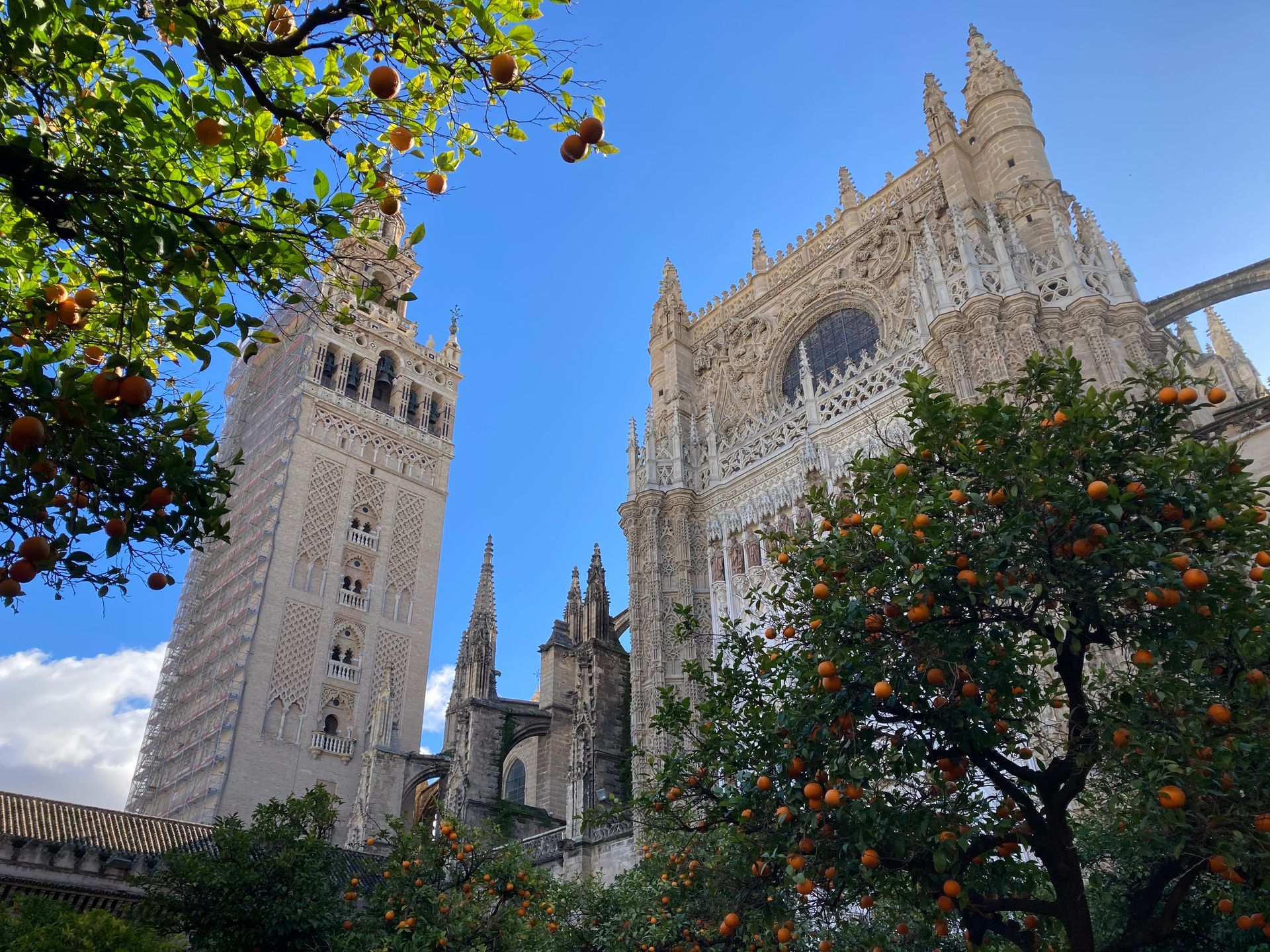 We visited La Giralda, the Cathedral with its iconic Moorish tower, a symbol of Seville’s layered history. The Moors ruled here for about 400 years until the 1200s, and climbing the steep ramps of the tower gave us not only a good workout but also breathtaking views of the city.